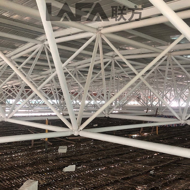 五、高空散裝的臨時支點應選用千斤頂為宜,這樣臨時支點可以逐步調(diào)整螺栓球網(wǎng)架高度。當安裝結(jié)束拆卸臨時支架時,可以自愛各支點間同步下降,分段卸荷。