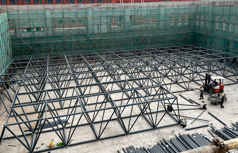 · 適用性:適用于跨越現(xiàn)有設(shè)施(如鐵路、廠(chǎng)房)、施工場(chǎng)地狹窄,或需要分段施工的超長(zhǎng)網(wǎng)架結(jié)構(gòu)。