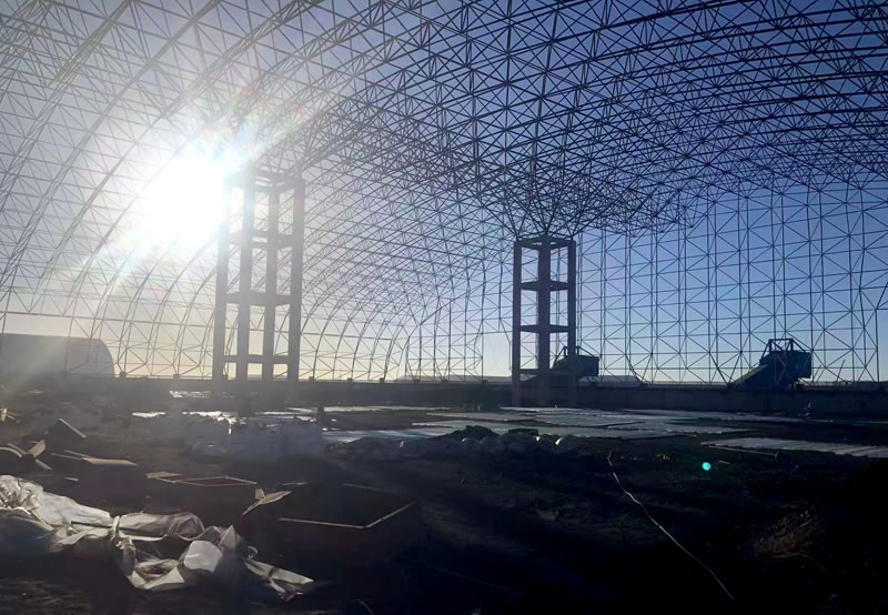 3、材料:正放四角錐螺栓球節(jié)點(diǎn)網(wǎng)架,按照甲方確認(rèn)的圖紙?jiān)O(shè)計(jì)要求加工制作。網(wǎng)架主材材質(zhì)為Q355B鋼管,底漆二道70um,主檁條鍍鋅C型鋼C220*75*20*3.0,次檁條鍍鋅C型鋼C180*70*20*2.5,屋面板0.5mm厚彩鋼單板